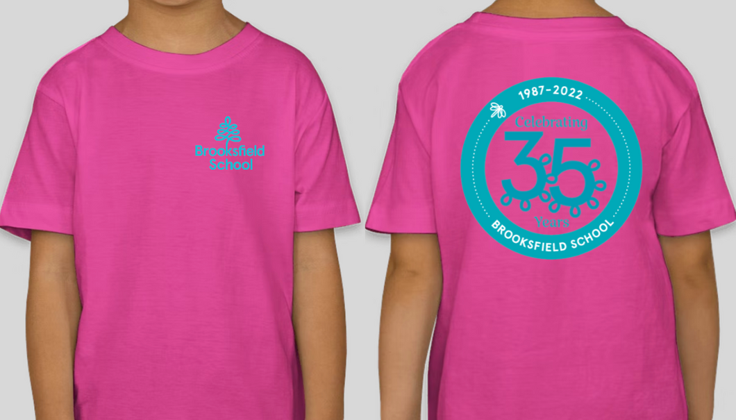 Brooksfield School logo on front / Brooksfield School 35th anniversary logo on back. TODDLER Sizes - 2T, 3T, 4T, 5/6.