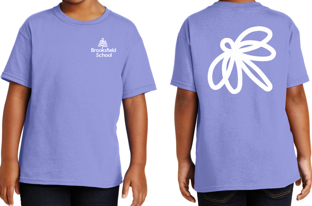 Available in VIOLET and ATHLETIC HEATHER GREY shirt colors.