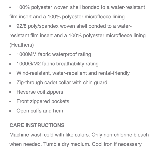 For your jacket, please choose men's or ladies style along with your jacket size, from the drop down arrow. Specs for the jacket as well as size charts for both styles are included in the additional images below.
